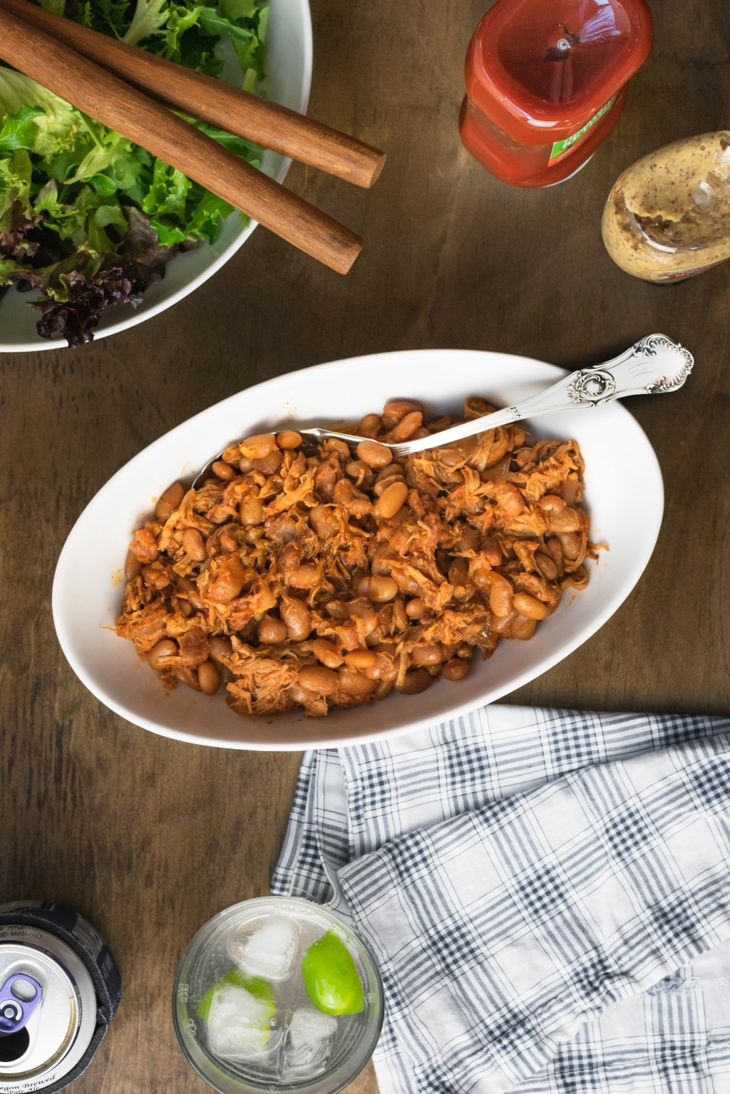 + Beans: Remove any extra, unwanted fat from the pork and lightly break it up with a fork (I like chunks of pork not just shreds but you do you). Stir together ketchup, maple syrup, mustard, garlic powder, smoked paprika, apple cider vinegar and salt. Pour beans and sauce into the pot, stir and cook on high for 2 hours until nice and thick (add a little extra water – 1/2c – if you need it to take longer).