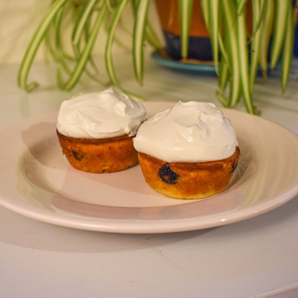 Whisk together greek yogurt and maple then scoop on top of a muffin. Just top them as you eat them or the muffins will get soggy.