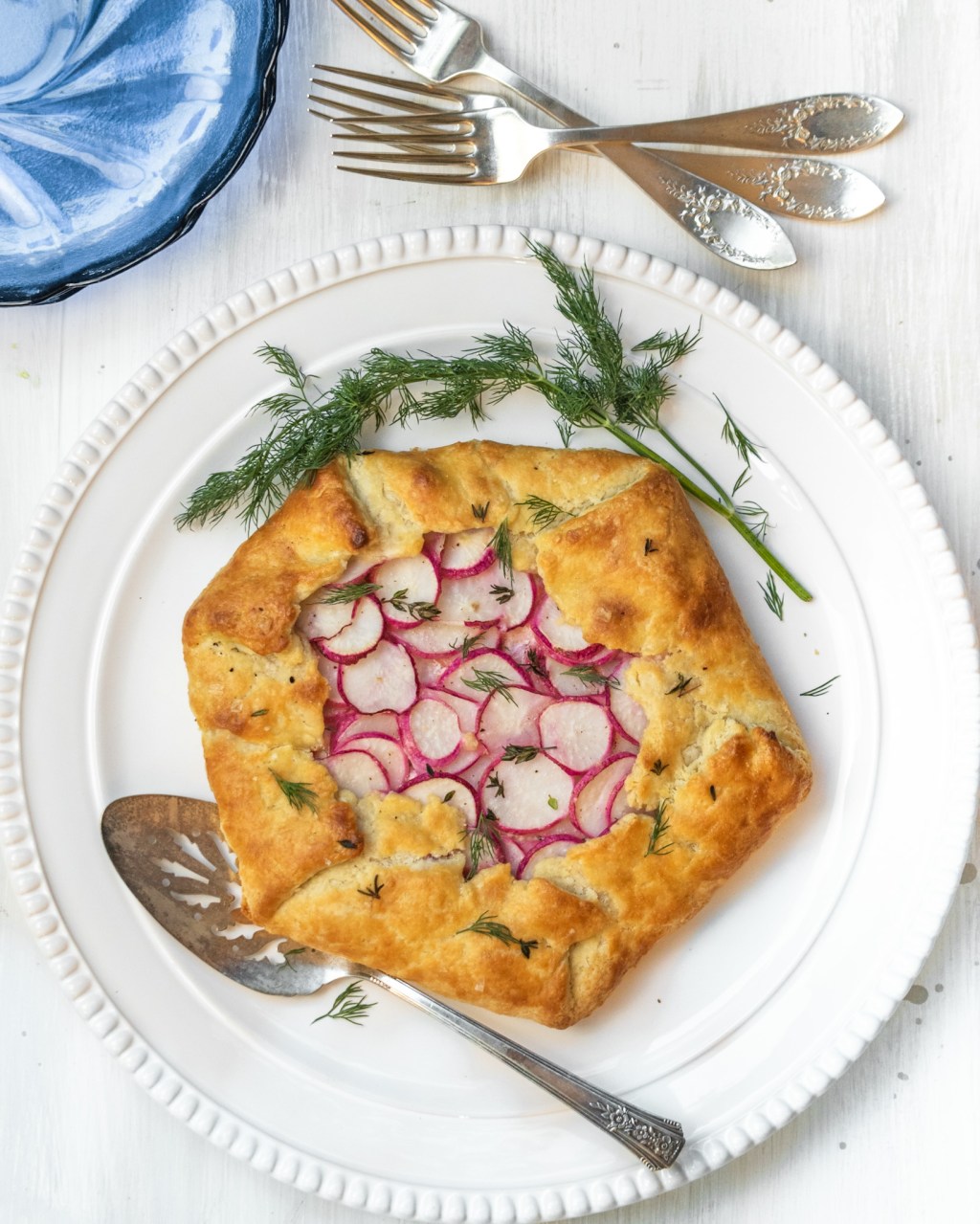 Bright radishes, fresh herbs + gooey cheese wrapped up in a flakey, buttery dough. So decadent, delicious + gorgeous, yet incredibly easy to throw together! A perfect side dish, brunch addition or happy hour snack. You’re going to want to give this one a try!