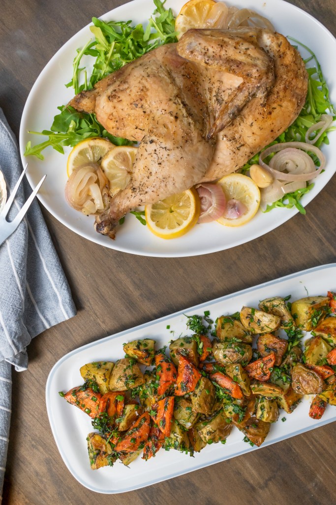 Succulent roasted carrots + potatoes tossed in spice-infused butter + tons of fresh herbs. So fresh + vibrant you’ll be making this all spring long!