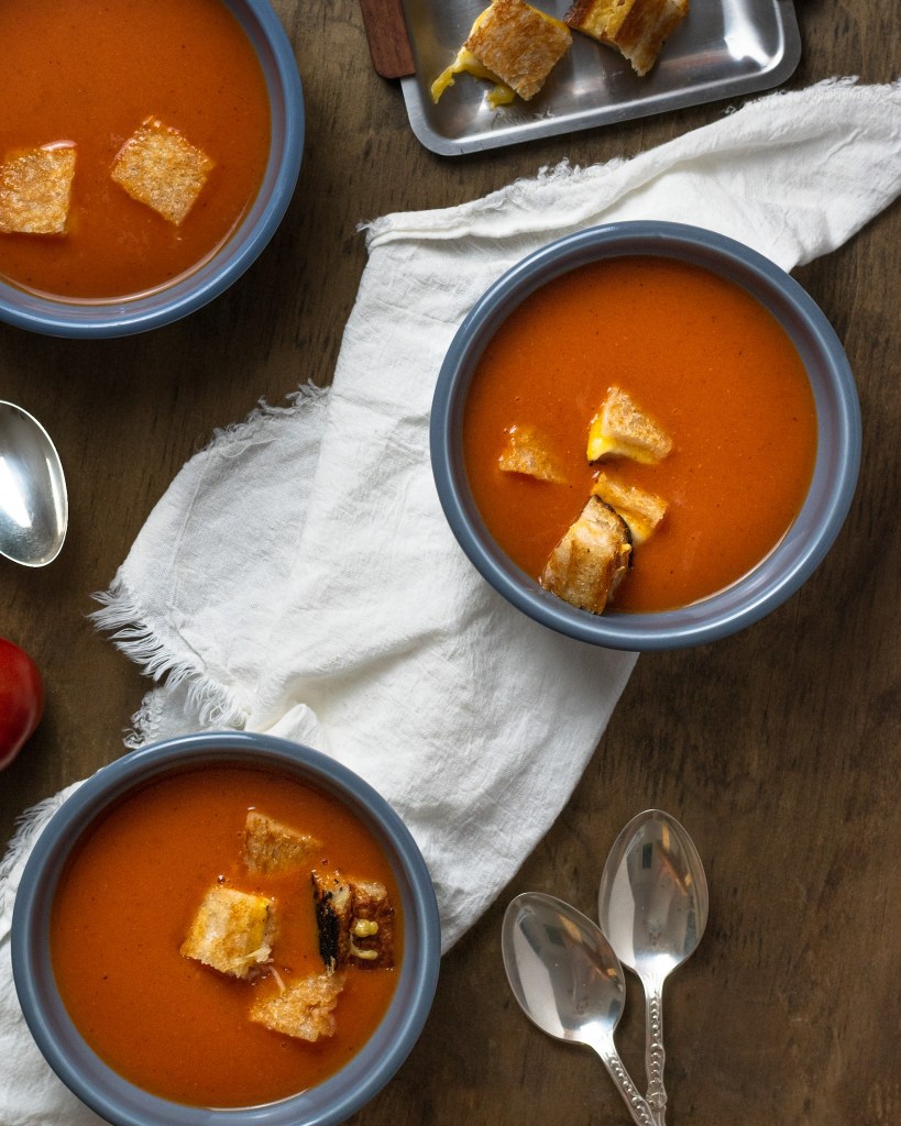 Fresh tomatoes, bell pepper + onions roasted until perfectly charred then blended to a smooth puree. The kind of soup you can enjoy all year long and anyone can make!