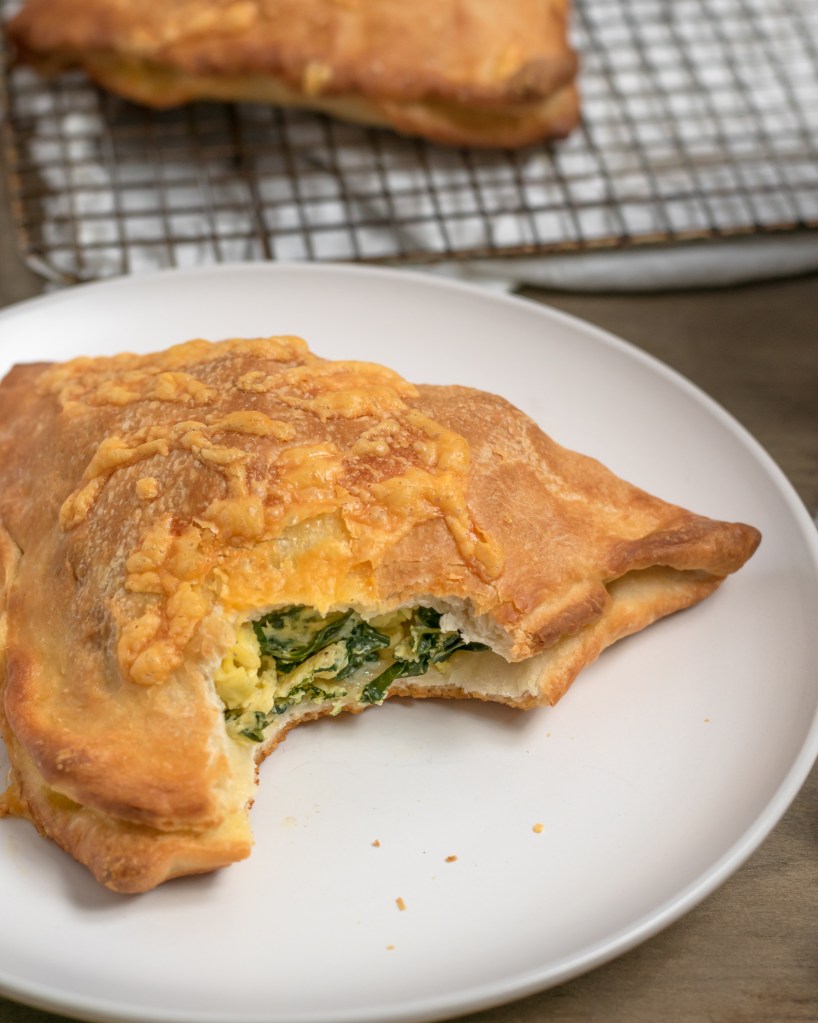 One of the tastiest on-the-go breakfasts around! Sauteed kale and cheddary eggs wrapped up in a perfect crispy dough. Incredible straight out of the oven and absolutely delicious warmed up for an on-the-go breakfast any day of the week. You’re going to love having these stashed in the freezer!