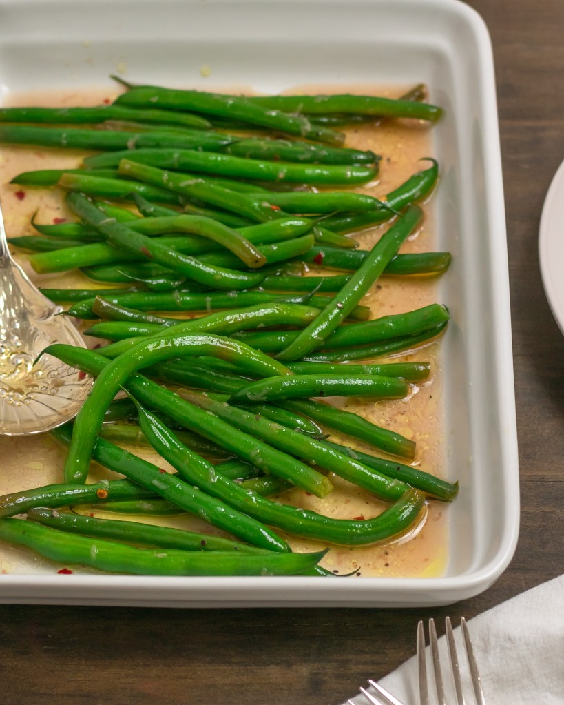 A recreation of a recipe I made with my grandma as a kid that made me totally fall in love with green beans. A quick blanch then let em marinade in the fridge for a few hours in this sweet and sour, garlicky vinaigrette. Super simple and great for summertime BBQs!