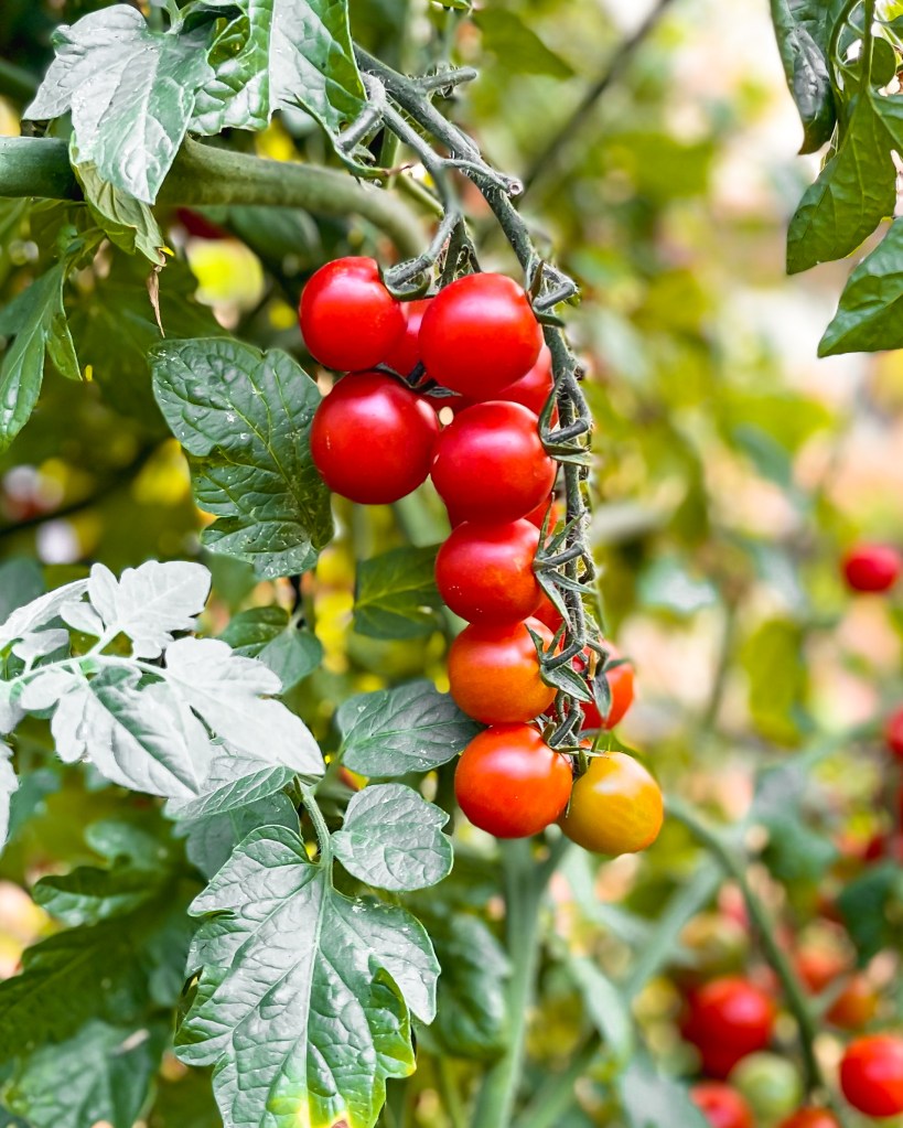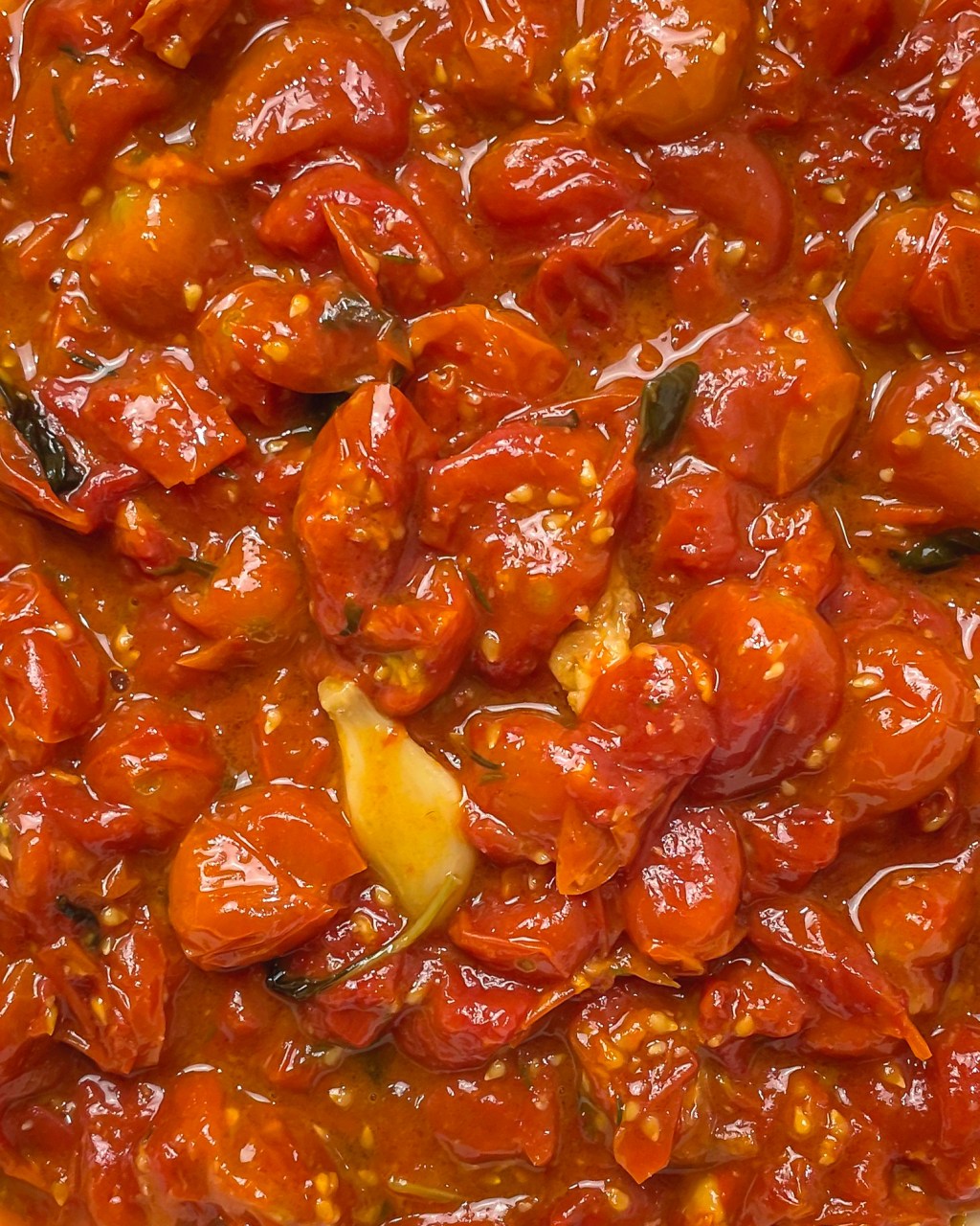2 lbs fresh tomatoes, cherries can be whole but I would chop up a little