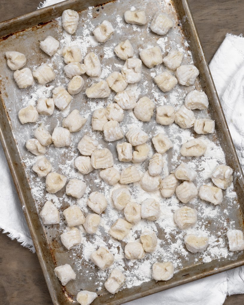 To Freeze: Distribute gnocchi on a parchment lined baking sheet then freeze solid for a few hours. Pour into a freezer safe container and freeze up to 6 months.