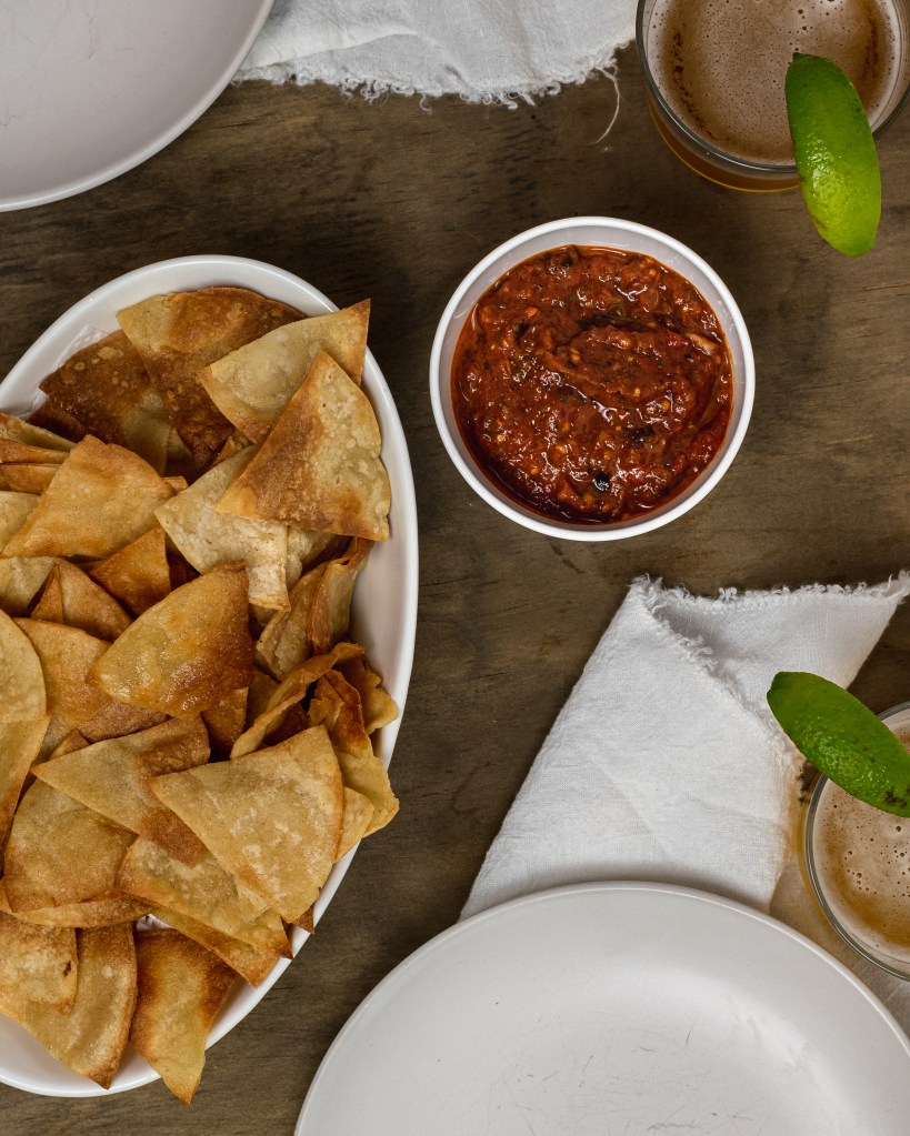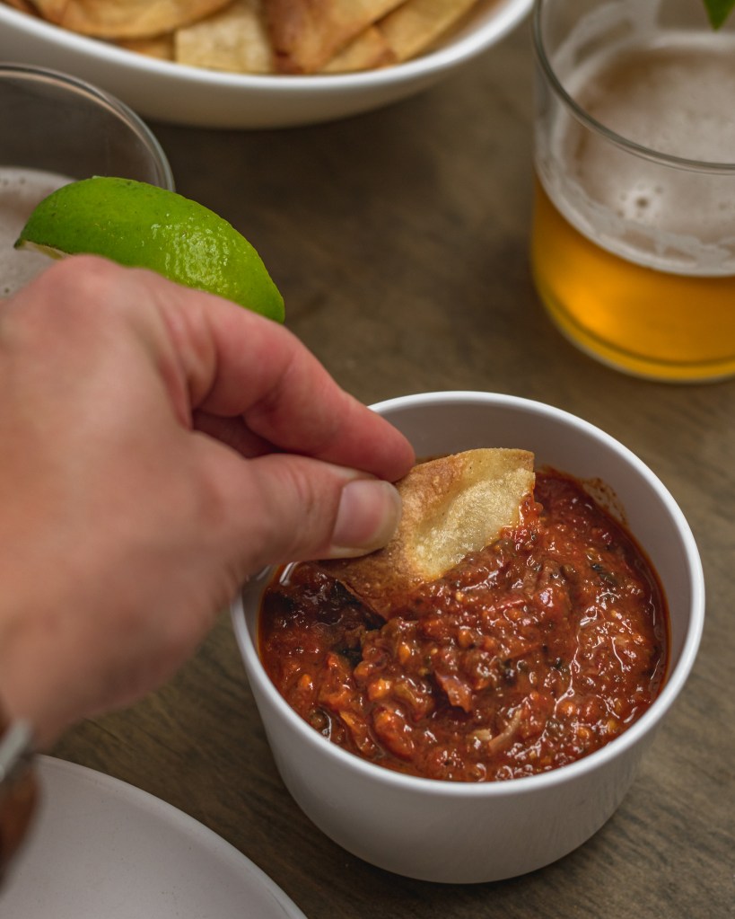 A fun seasonal twist on classic salsa. Fresh tomatoes, poblano pepper, jalapeño and red onion seasoned up then roasted until super soft and charred. The veg then gets pureed with a little lime juice into an incredibly flavorful salsa that will impress all your friends!