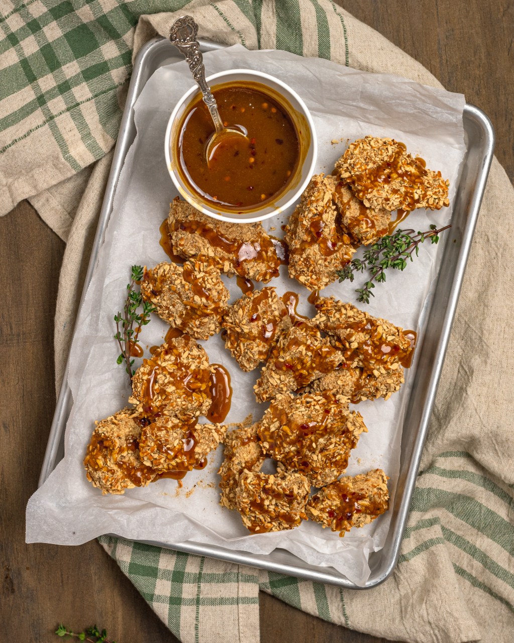 Drizzle or dunk the chicken nuggets in the sauce.