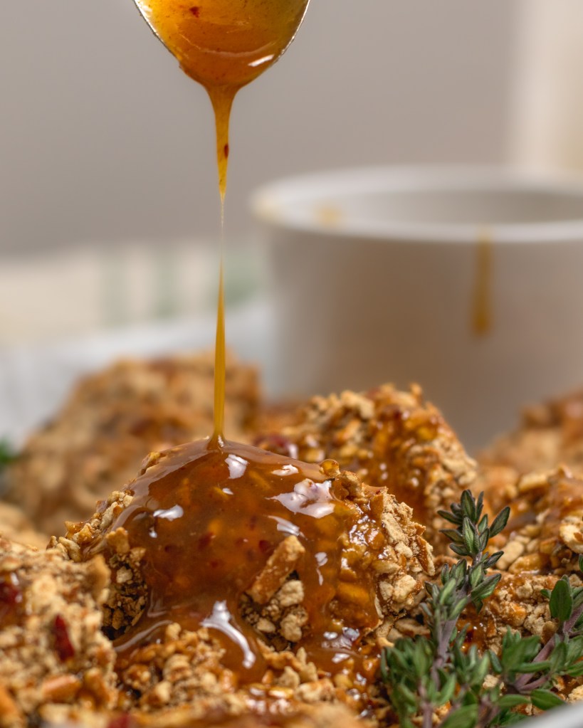 Pretzel breaded baked chicken nuggets drizzled with a spicy, maple syrup, dijon mustard sauce. Holy moly these are DELICIOUS! A perfect snack, appetizer or main dish. You are going to love these!