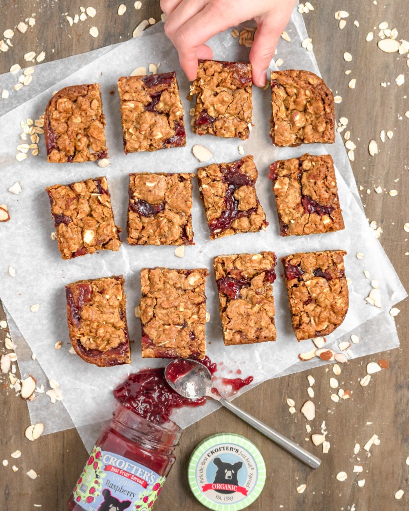 Chewy and gooey on the bottom, sweet and tart raspberry jam in the middle and a crisp and crunchy crumble on top. These super easy to make bars are seriously to die for. You have to make them!