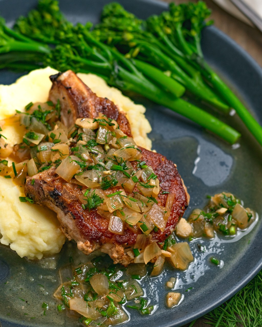 Quick and easy pork chops, pan seared then deglazed and covered in a delicious white wine pan sauce, loaded with lots of herbs and bits of onion and garlic. So darn flavorful. You’re going to love it!