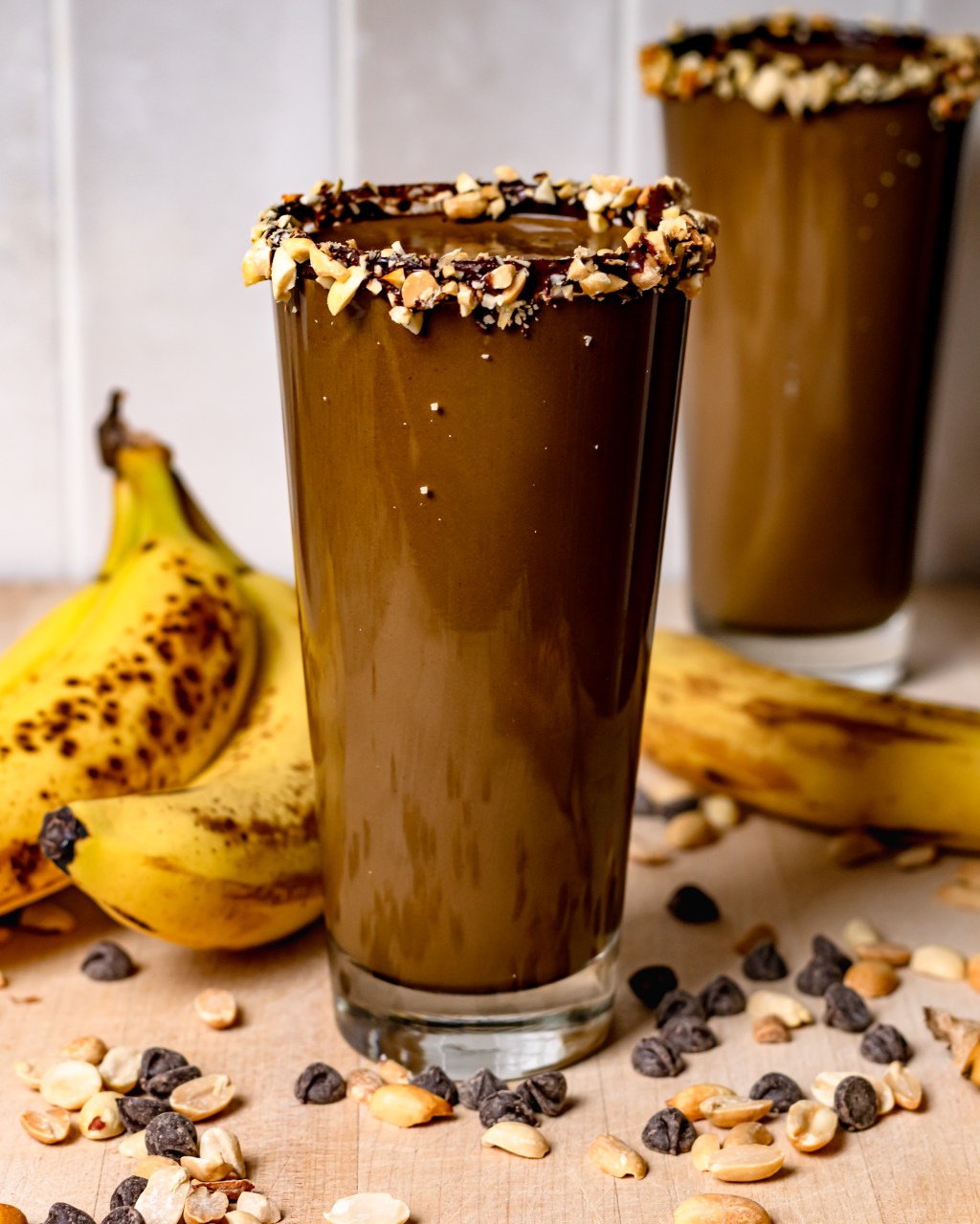 The delicious, high protein breakfast you can whirl up in no time! Frozen bananas, peanut butter and cocoa powder blended with greek yogurt and lots of spinach. Tastes like a milkshake but loaded with nutrients, healthy fats and protein. A super tasty way to start the day!