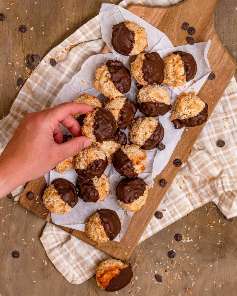 One bite and you are instantly on a tropical vacation! Toasty sweet drops of coconut dipped in rich dark chocolate. Completely addictive and so easy to make.