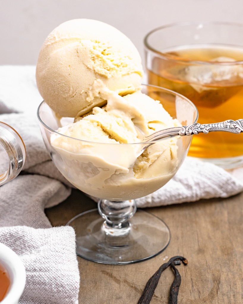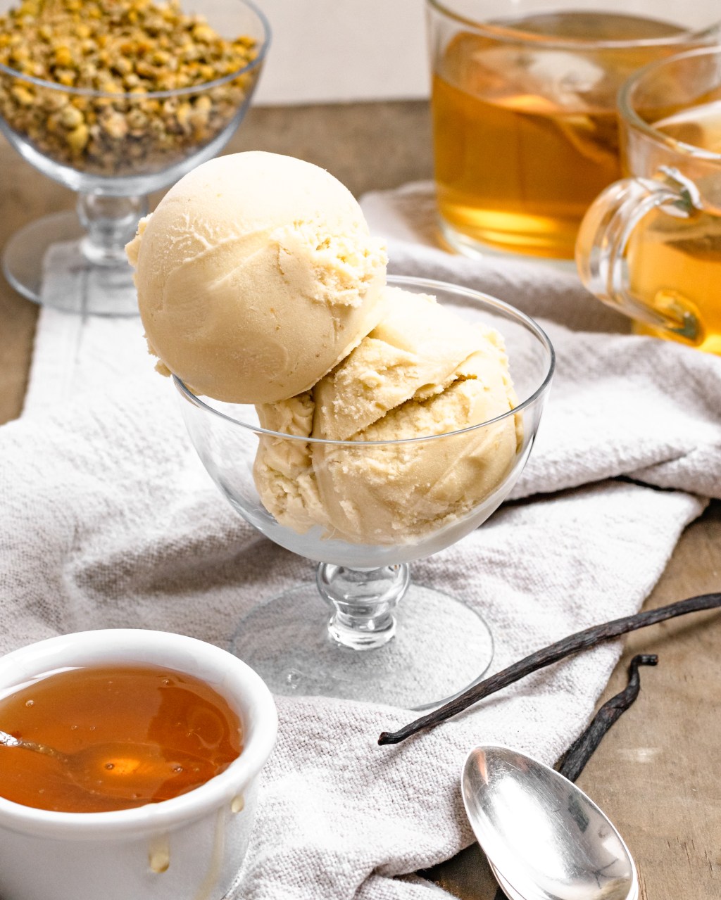 The perfect combination of my favorite nighttime tea with my favorite nighttime treat. Super smooth ice cream sweetened with honey and infused with chamomile and vanilla. So delicate and dreamy.