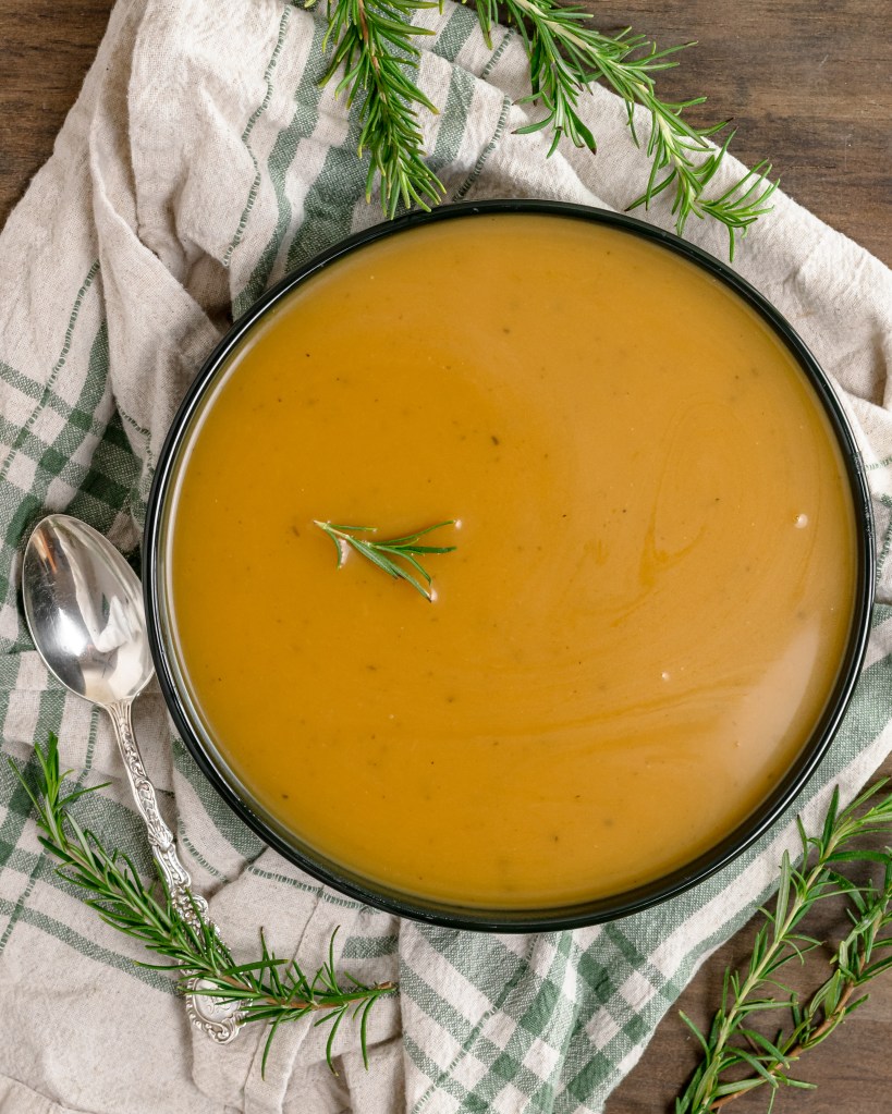 The kind of soup that filled the whole house with cozy, delicious vibes. Leeks cooked down with lots of fresh rosemary and thyme then simmered with butternut squash and pureed into the most luscious and flavorful soup.