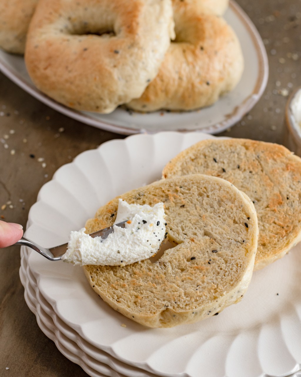 I absolutely love an everything bagel, but making them at home? The seasoning blend ends up everywhere. So, I’ve incorporated all that delicious flavor into the dough in my ‘mess free’ version. A perfectly fluffy, chewy bagel loaded with everything bagel seasoning. So delicious, easy and mess free!